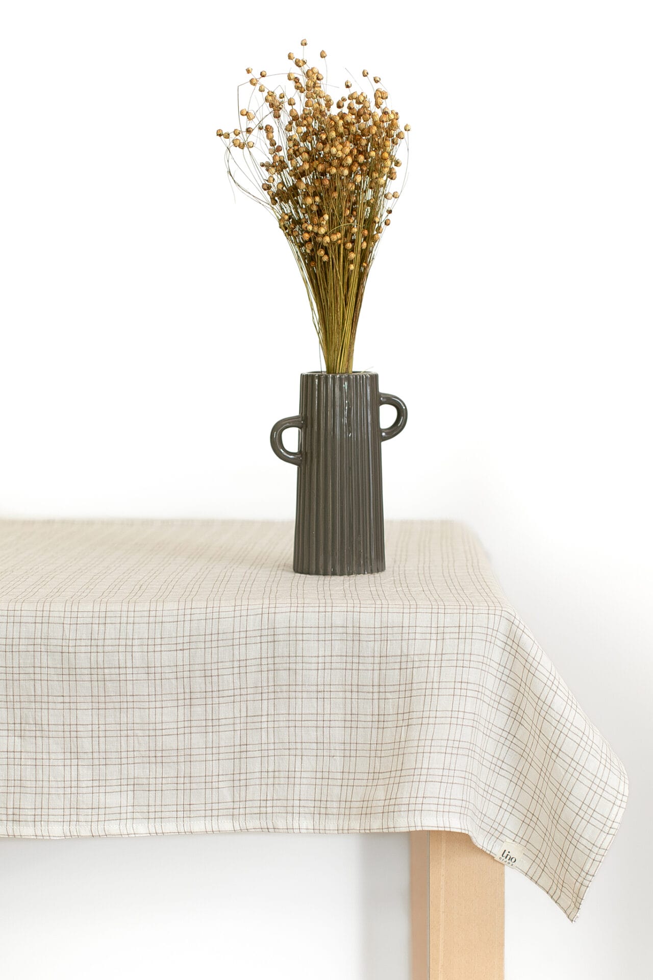 Lininė staltiesė “White beige gingham”